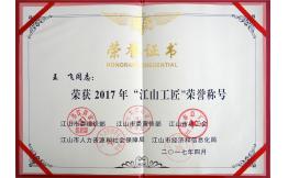 喜訊:我司員工王飛榮獲“江山工匠”榮譽稱號