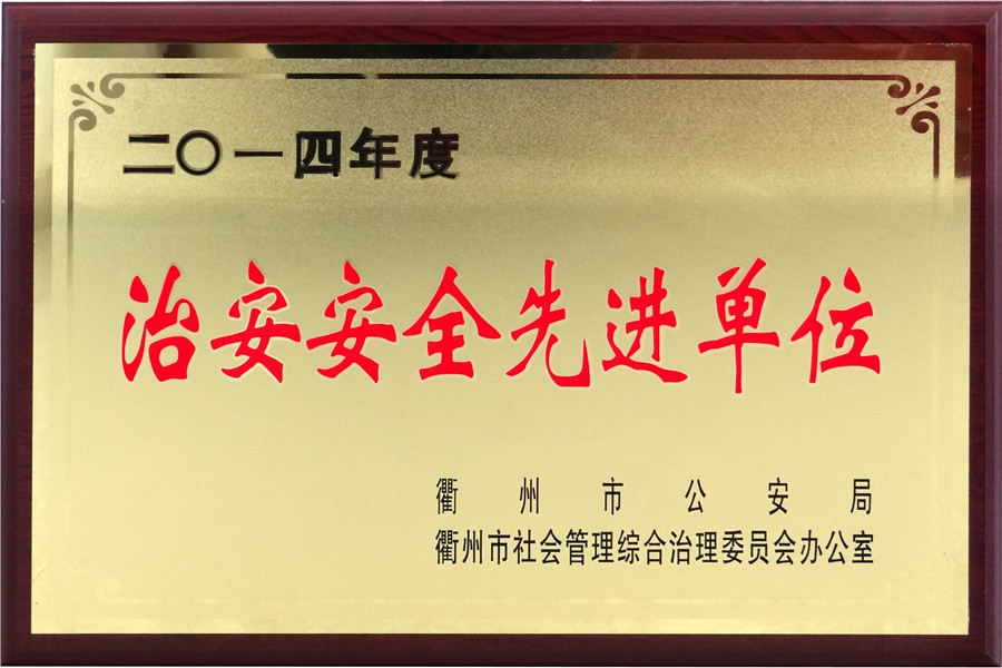 恭喜科潤電力科技股份有限公司被衢州市公安局、衢州市社會管理綜合治理委員會辦公室評為2014年度治安安全先進單位!