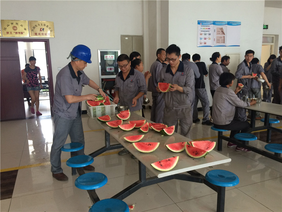 酷暑盛夏,熱浪滾滾,尤其近段時間,我市氣溫節節攀升,難以忍耐。“在如此高溫天氣下作業,生產一線員工的防暑工作是否到位?身體是否健康?”成了公司上下領導最為擔憂的。 為做好防暑降溫工作,保障生產一線員工的健康,確保員工身體健康平安度夏,董事長作重要指示,總經理和生產線相關領導作正確指導,從昨日起,由辦公室負責具體落實,為辛勤工作在生產建設一線的廣大員工送上了“夏日的清涼”。