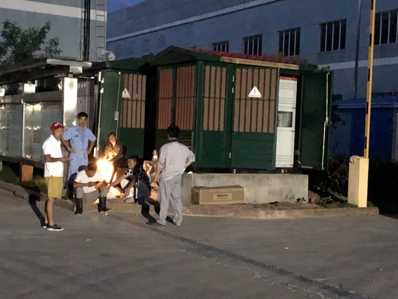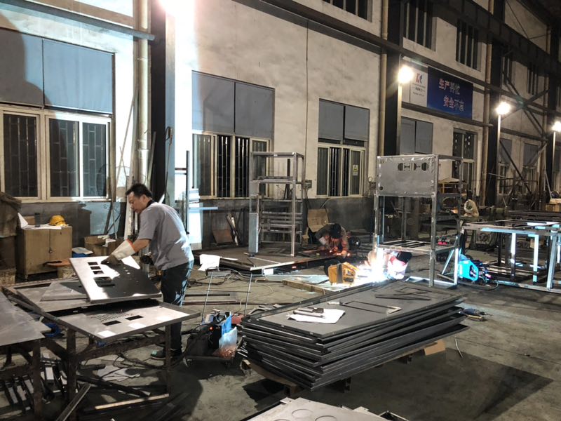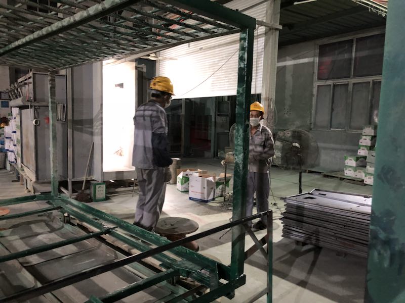 凌晨4:40,光伏變并網人員在準備斷電并網,這時,高壓柜已焊接完成順利進入磷化工序。