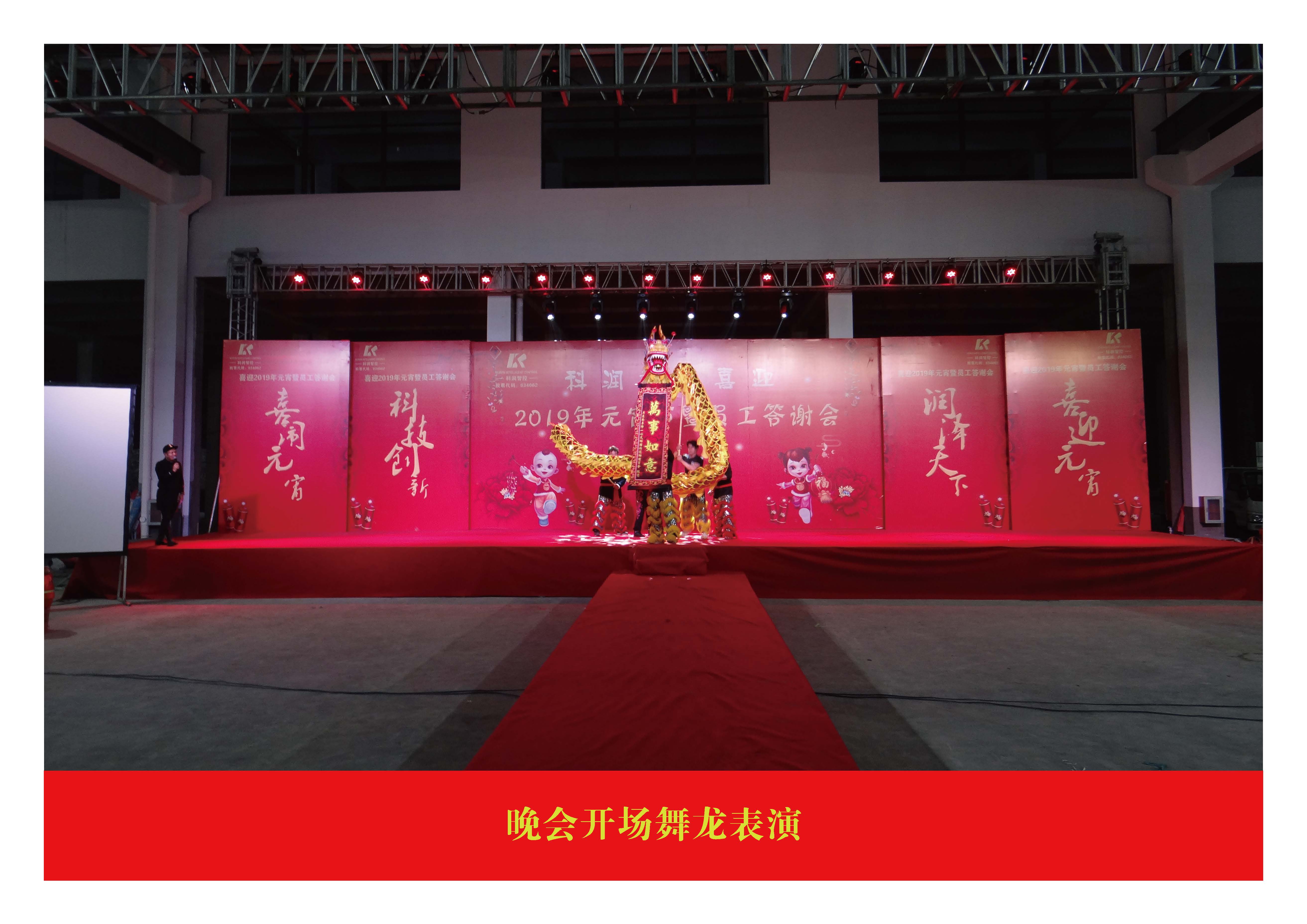 2019年2月17日下午4點30分,全體員工踏著四射的彩色燈光陸陸續(xù)續(xù)地進入了會場,并于簽到組簽到,接著在工作人員的指引下,按照安排的座位有序地入座。首先,大屏幕上播放了《創(chuàng)新發(fā)展》的VCR,回顧了2018年科潤的歷程發(fā)展,充分展現(xiàn)了公司的企業(yè)文化和文明精神。隨后,在全體員工的熱烈掌聲中,王榮董事長進行了熱情洋溢、信心滿滿的致詞,肯定了公司全體員工在2018年實現(xiàn)5個億產(chǎn)值的業(yè)績,也希望在2019年全體員工繼續(xù)努力,實現(xiàn)7個億的產(chǎn)值目標,為公司發(fā)展引領(lǐng)了方向,明確了目標任務(wù),正式啟動了元宵節(jié)晚宴。晚宴開始的同時,抽獎活動穿插著各個精彩的表演也一并開始了。五等獎,四等獎,三等獎,二等獎,一等獎,特等獎的抽獎過程中,開場舞龍,結(jié)尾舞獅,中間穿插的科潤員工及其親戚子女精彩紛呈的才藝表演:歌唱,笛子演奏,小提琴演奏,為元宵節(jié)晚會帶來了高潮迭起的活躍氣氛。一開場,映入眼前的是一條金色的長龍,舞龍表演者在舞臺上快速地奔跑,敏捷地穿梭,每個動作都是那樣細致入微,淋漓盡致,他們的手臂急促地揮舞著,有力地揮舞著,大起大落的揮舞著。整齊一致的步伐踏出自信飛揚的一面。舞龍表演充分帶動了全體員工的高漲情緒,同時也彰示著科潤員工及其親戚子女即將一一為我們帶來意想不到的精彩表演。表演過程中,表演者偶爾為大家投擲精致的大小不一的小玩偶,也是現(xiàn)場一道亮麗的風景線。尤其,現(xiàn)在的小朋友們,真是兩眼放光的狀態(tài),著實逗樂了一眾旁人。吳枵熠的童聲歌唱,董炫辰的笛子演奏,周曉玲的《新貴妃醉酒》,銷售經(jīng)理嚴小榮的《像夢一樣自由》,總經(jīng)理章群峰的《步步高》,董事長王榮的《千紙鶴》,都為我們展示了不一樣自我與風采。最后,在舞獅歡喜鬧元宵及美好的祝福下,王榮董事長為晚會結(jié)束獻上了最后的發(fā)言,提早祝福全體員工元宵節(jié)快樂,希望公司能夠未來宏圖大展,步步高升!