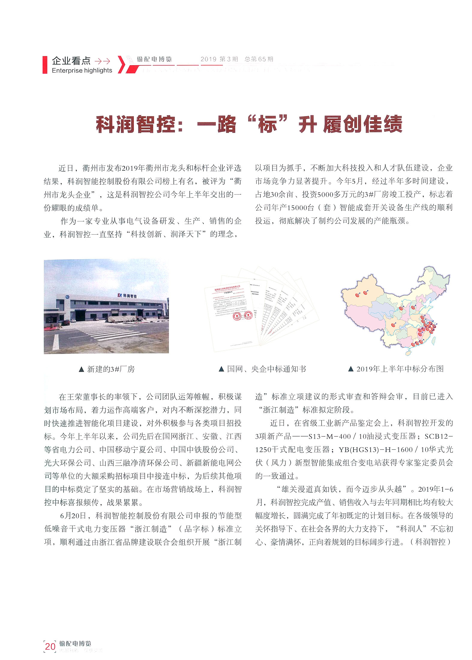 《輸配電博覽》雜志2019年第3期,企業看點版塊關于科潤公司的報道。