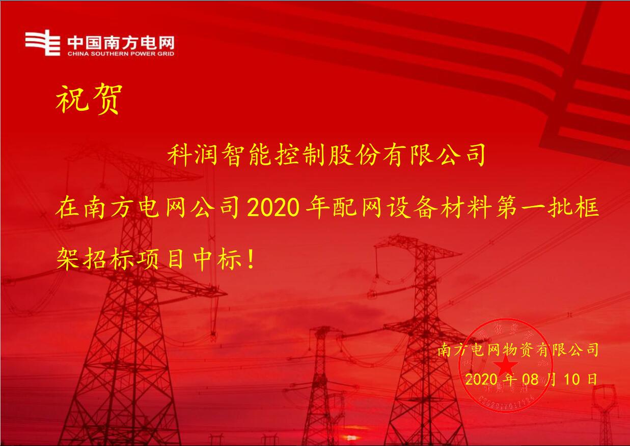 熱烈祝賀我司中標南方電網公司2020年配網設備材料第一批框架招標項目,中標金額近2500萬元。