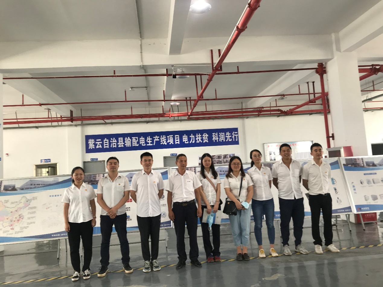 2020年8月14日下午,貴州電網公司安順供電局優秀青年人才一行40多人蒞臨黔冠·貴州科潤電力科技有限公司,紫云縣貓營工業園區行業幫扶點進行現場參觀考察。