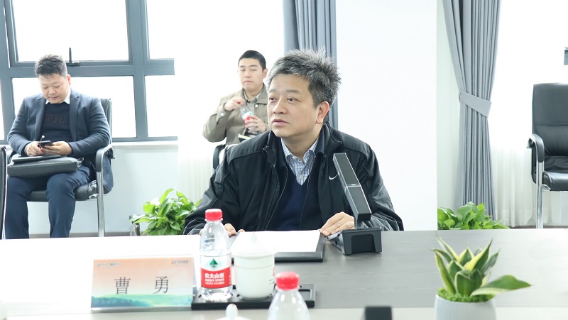 曹勇一行參觀了公司展廳并在會議室座談交流,公司董事長王榮向曹勇一行介紹了公司目前的發展情況、經營狀況、未來規劃等方面內容。