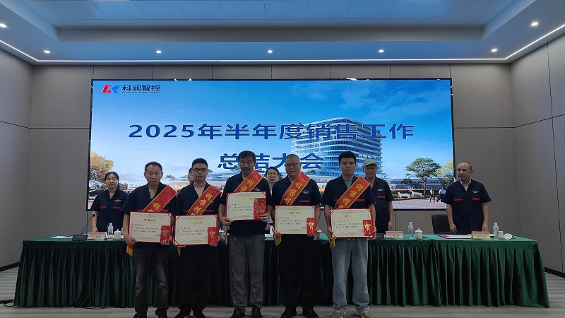8月2日下午,科潤智控召開2025年半年度銷售工作總結大會,公司董事長王榮、相關領導、全體銷售人員、銷售內勤、法務部共計110余人參加。會前,由董事長王榮親自率隊參觀智慧新能電網裝備項目一期工程,會上總結分析了2025年上半年各項銷售數據、對銷售工作各類先進進行了表彰。